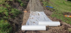 In diesem feuchten Bereich des Bike Flowtrails waren ein Abflussrohr, ein Geotextil und eine Schicht Kies erforderlich Sep. 9, 2025